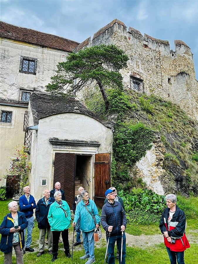 50 Personen der OG Warth wanderten am 14. Juni 2023 zur Burg hinauf oder konnten mit einem genehmigten Bus fahren. Sehr interessant die Führung durch den alten Teil mit einem runden Bergfried aus dem 13. u.14. Jhdt. sowie Hochschloss aus dem 15. bis 17. Jhdt., das auch eine bedeutende Sammlung von Waffen und mittelalterlicher Kunst beinhaltet.