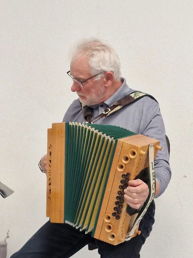 Leopold Aschenbrenner begleitete unsere gesanglichen Künste mit seiner steirischen Harmonika. Wir unterhielten uns auch gut mit lustigen Witzen und Gedichten und der eiserne Kern hielt durch bis 20 Uhr.